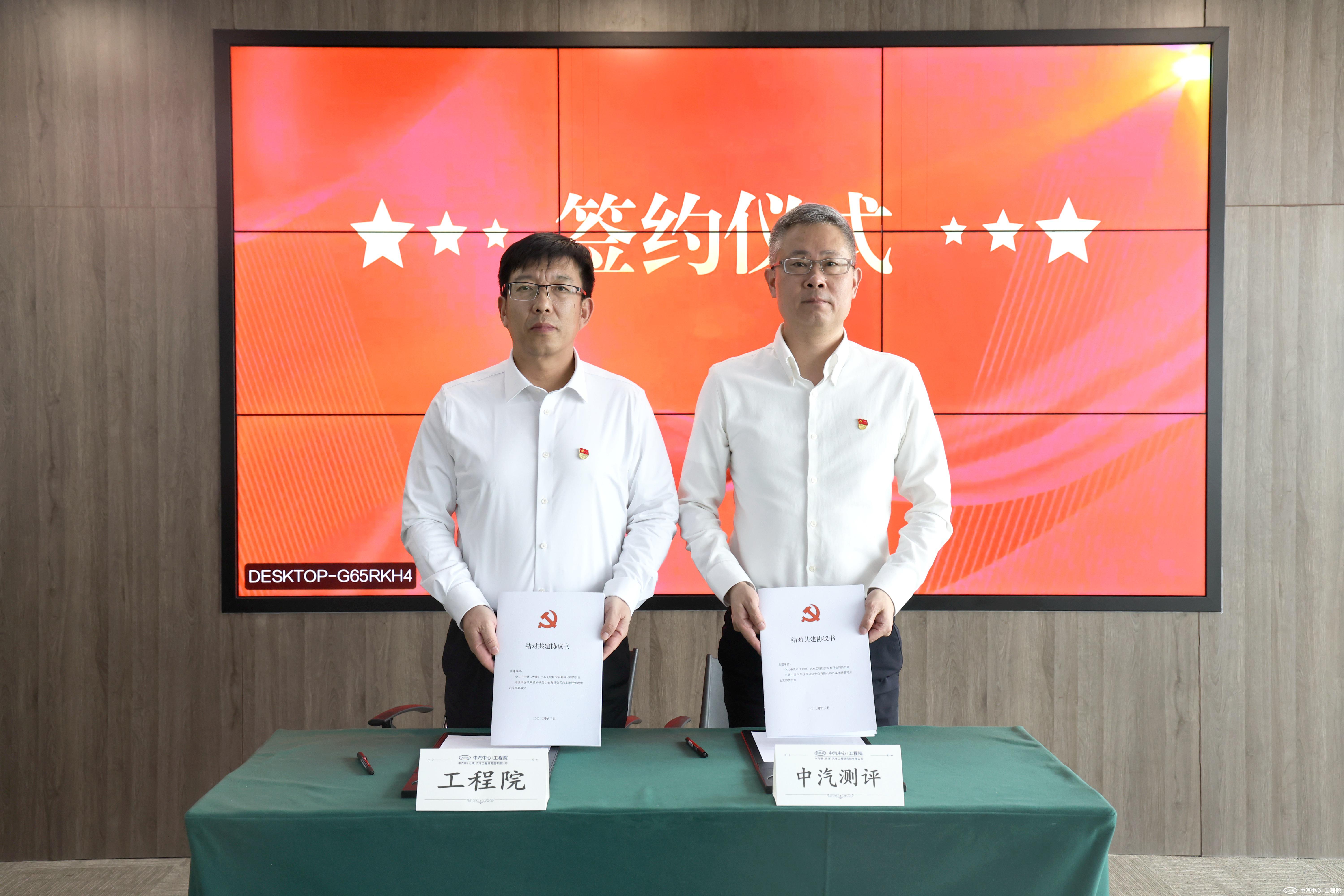 工程院黨委書記、總經(jīng)理王建海,中汽測(cè)評(píng)黨支部書記、主任李向榮分別代表雙方黨組織共同簽訂結(jié)對(duì)共建協(xié)議。雙方表示將發(fā)揮各自優(yōu)勢(shì),在共建共享、協(xié)同發(fā)展的基礎(chǔ)上打造新型黨建工作模式,以共建促黨建,以共建促合作,以共建促發(fā)展。