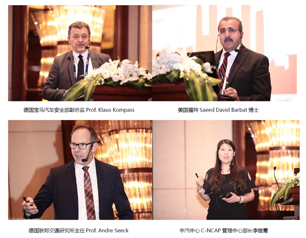 會議邀請德國寶馬汽車安全部副總監Prof. Klaus Kompass做了《自動駕駛的安全考慮》的主題報告,中汽中心標準所劉桂彬副總工程師介紹了中國電動汽車標準的現狀與未來的發展、中汽中心C-NCAP管理中心李維菁部長介紹了CNCAP的最新變化與未來趨勢,德國戴姆勒奔馳Jochen Feese分享了他們對中國交通安全的研究以及戴姆勒奔馳汽車公司的安全技術,美國福特Saeed Barbat博士分享了福特的動力電池建模和測試方法,國軒電池林志宏院長分享了動力電池的開發與安全性,德國聯邦交通研究所主任Prof. Andre Seeck分享了ENCAP關于主動安全、被動安全、行人保護的現狀以及ENCAP的未來規劃、德國Britax全球技術總監Farid Bend jellal介紹了ENCAP關于兒童保護的要求與提高中國兒童道路安全的思考、GlobalAutoRegs(英文有空格嗎)的John Creamer分享了美國NCAP的現狀與未來以及聯合國WP29關于自動駕駛安全性的討論現狀、東盟NCAP秘書長Dr. Khairil Anwar Bin Abu Kassim介紹了東盟NCAP的現狀與未來規劃以及東盟國家的摩托車安全問題。會議共邀請國內外汽車安全行業的三十余位專家分享了最新的汽車安全技術成果。