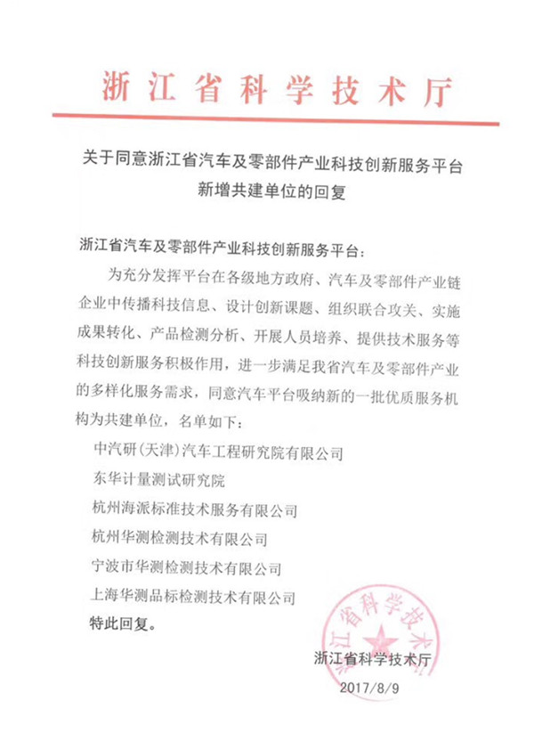 2017年8月9日,中汽中心汽車工程研究院(以下稱“工程院”)獲批浙江省汽車及零部件產業科技創新平臺共建單位,浙江省內企業找工程院做研發類測試及技術服務,可申請當地政府創新券,享受創新補貼。