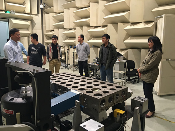 顧燦松副主任陪同客人參觀了工程院各性能試驗室并向客人介紹了工程院的主要業務,發展方向及整體情況,張蓉蓉總經理對工程院的綜合服務能力給予高度評價。