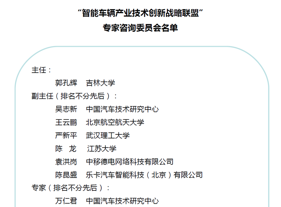 本次會議一致通過了《智能車輛產業技術創新戰略聯盟協議書》、《智能車輛產業技術創新戰略聯盟章程》、《智能車輛產業技術創新戰略聯盟項目經費管理辦法》、《智能車輛產業技術創新戰略聯盟項目管理辦法》和《智能車輛產業技術創新戰略聯盟知識產權管理辦法》五項聯盟章程材料,確定了聯盟組織架構,明確了聯盟長遠規劃及現階段工作目標,并為聯盟專家咨詢委員會多位專家頒發了專家聘書,最后各聯盟代表為“智能車輛產業技術創新戰略聯盟”進行揭牌儀式。
