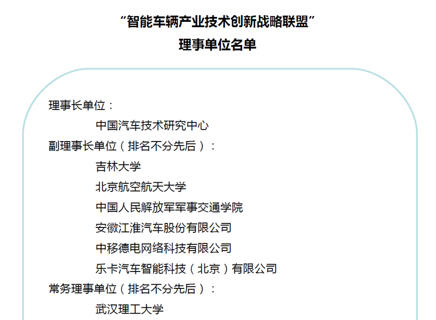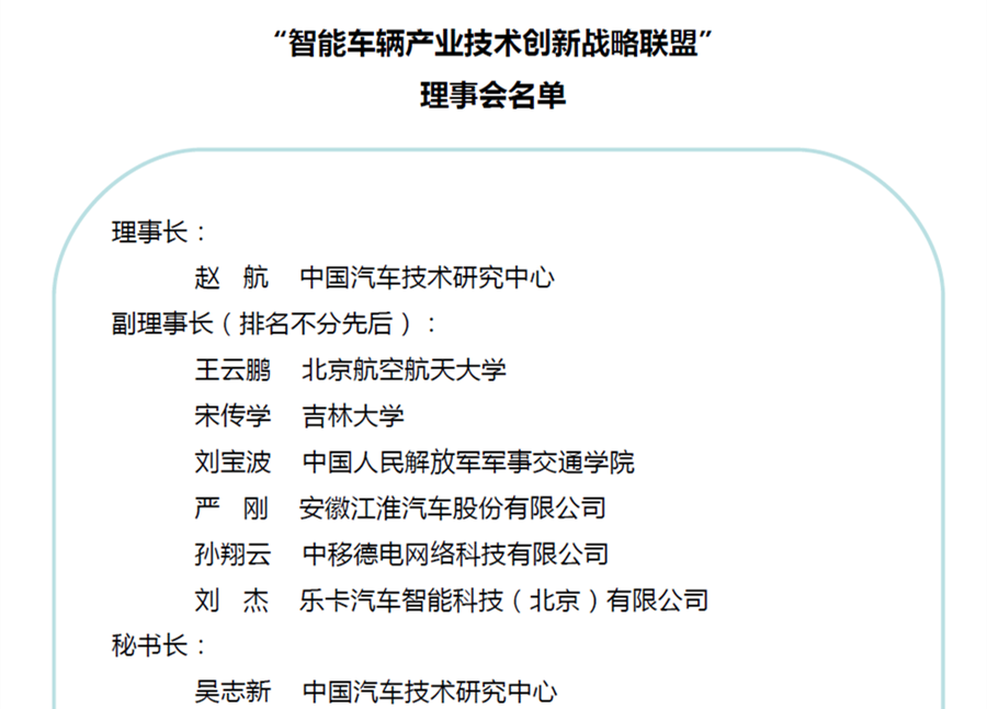 2015年8月26日下午,由中國汽車技術研究中心主辦的“智能車輛產業技術創新戰略聯盟”成立大會在北京成功召開。來自36家發起單位的100余人參加了本次會議。國家科技部等相關領導發表祝賀致詞。