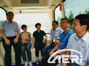 在現(xiàn)場調(diào)研環(huán)節(jié),工程院智能網(wǎng)聯(lián)室副主任郭蓬向牛向春同志匯報了自動駕駛及智能網(wǎng)聯(lián)汽車系統(tǒng)開發(fā)現(xiàn)狀及已經(jīng)取得的研究成果,并且邀請牛書記親身體驗中汽中心汽車工程研究院主導(dǎo)研發(fā)的L4級Pro-Blue“深藍”無人駕駛巴士,真切感受“深藍”強悍的控制能力和執(zhí)行能力。
