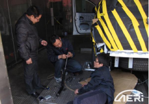 2012年11月,正在從事懸架K&C特性研究的楊建森接到通知,調往四立柱實驗室,負責實驗室技術提升、體系化建設及運營管理工作。當時實驗室正處在設備安裝調試階段,缺人員、缺工具、缺經驗,大到設備調試,小到工裝卡具設計、傳感器安裝以及輪胎、減震器、彈簧的更換,他都親自上陣,經常連續工作十幾個小時,這種情況持續了足足一年的時間,才陸續有實習工程師和技工轉正。有一次一汽大眾的試驗跟蹤工程師,也是楊建森研究生同學,看到因為減震器溫度超限值立馬鉆進車底檢查的楊建森,驚訝和感嘆于楊建森他“拼命三郎”的工作精神。實驗室受場地和預算限制,浮動地基與安裝空間無法匹配,軸輪距調節需要在非常狹小的空間手動操作,每調節一次又涉及到眾多液壓軟管的重新固定,試驗過程中每間隔兩個小時都需要檢查一次軟管是否磨損,固定裝置是否松動……多少個日夜他都是在狹小濕熱的地坑中度過的,不記得迭代優化了多少版軟管固定方案,不記得清理過多少次滲漏的液壓油,也不記得取出過多少根斷在地基里的螺絲……艱苦的工作環境,使楊建森的工服和指甲里經常有清洗不掉的油泥。當時帶環境的四立柱實驗室國內少見,四立柱設備與環境倉的供應商普遍缺少兩者匹配的經驗,受限于設計空間,環境倉的風道在側面無法布置,供應商最終確定了頂部布置方案,這也為后期的環境倉經常漏水埋下了隱患。在不斷的遇到問題,解決問題的過程中使得他在環境倉方面“百病成醫”。