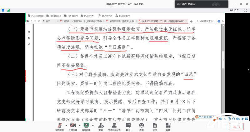 為切實(shí)增強(qiáng)黨員同志廉潔自律意識(shí)和拒腐防變能力,工程院黨委第四支部于4月27日通過(guò)線下與線上兩種方式開(kāi)展了黨風(fēng)廉政建設(shè)和反腐敗教育活動(dòng)。活動(dòng)由紀(jì)檢委員高海洋同志主持,25名黨員同志參加。