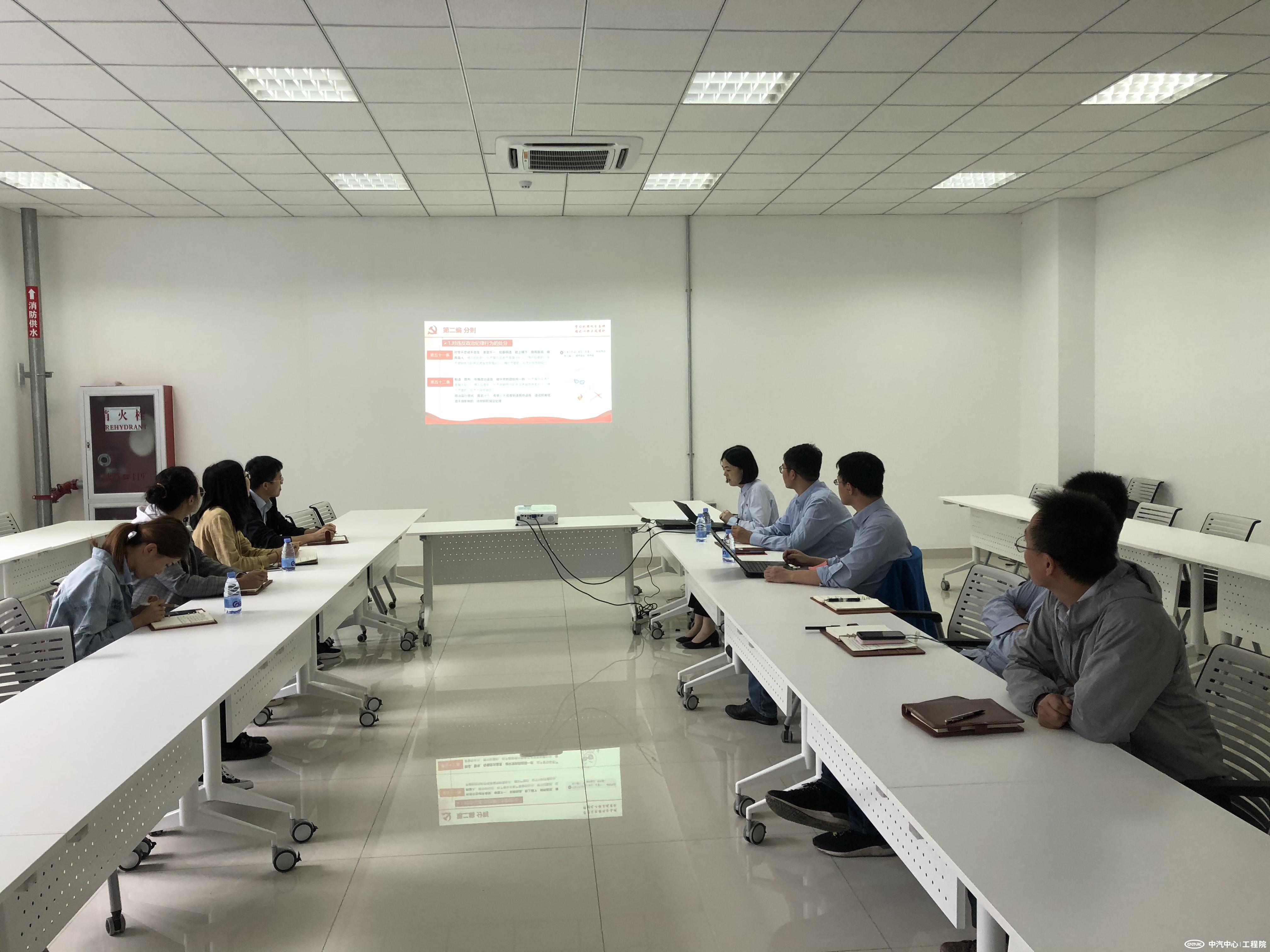 黨課結束后,由第六支部紀檢委員劉學龍對第六支部全體在津黨員、群眾進行廉潔從業教育。劉學龍同志從國家、中汽中心以及第六支部三個層面解讀當前反腐倡廉建設形勢和任務,帶領大家一起學習工程院財務報銷相關制度,對大家關心的問題進行詳細解讀?;顒幼詈?,全體人員共同觀看廉潔從業警示教育片《欲望的代價》。