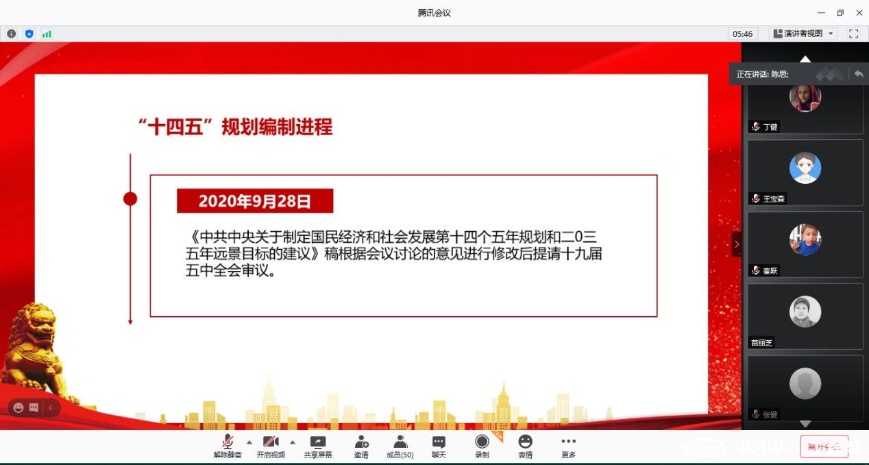 會議第一項,由第五支部書記唐風敏同志帶領大家共同學習和解讀了黨的十九屆五中全會內容,闡明了大會的意義和所傳達的精神。第四支部書記劉雙喜強調,無論是黨員同志還是普通群眾,都要持續深化十九屆五中全會精神,加強業務聯系,并在今后工作中將之作為指導方針和主要目標。