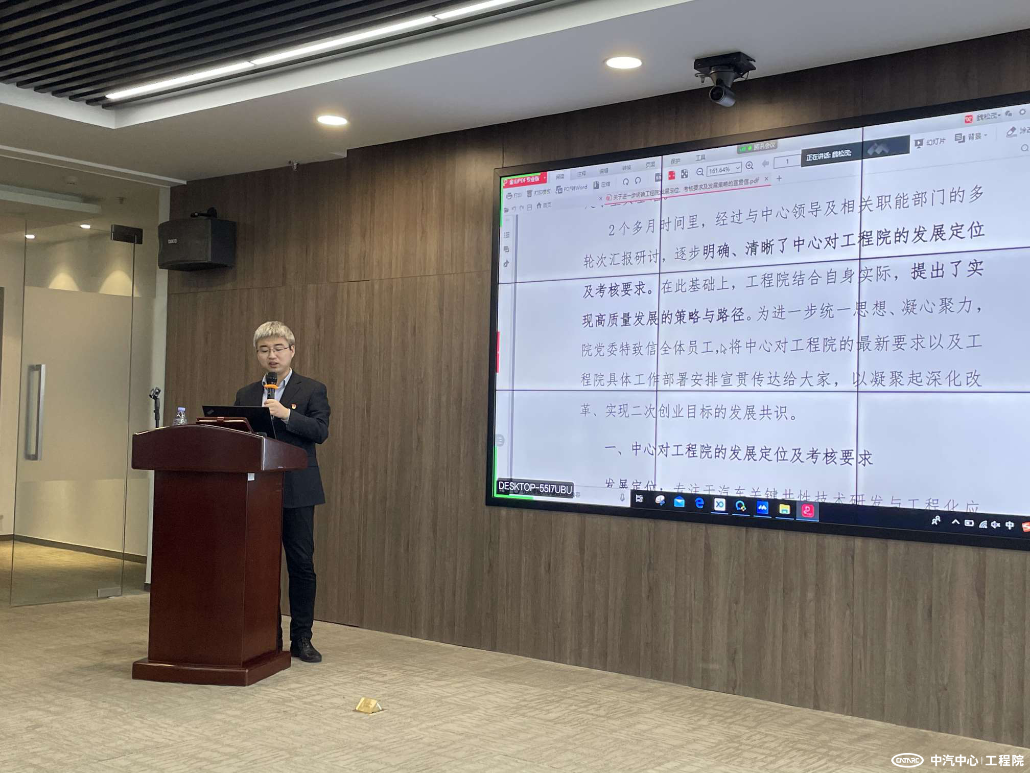 2020年12月23日,工程院黨委委員、副院長戎輝到第七支部講授“貫徹十九屆五中全會精神,做好第十四個五年規(guī)劃”專題黨課,支部全體黨員、共青團員、入黨積極分子、入黨申請人及員工代表參加了學習。
